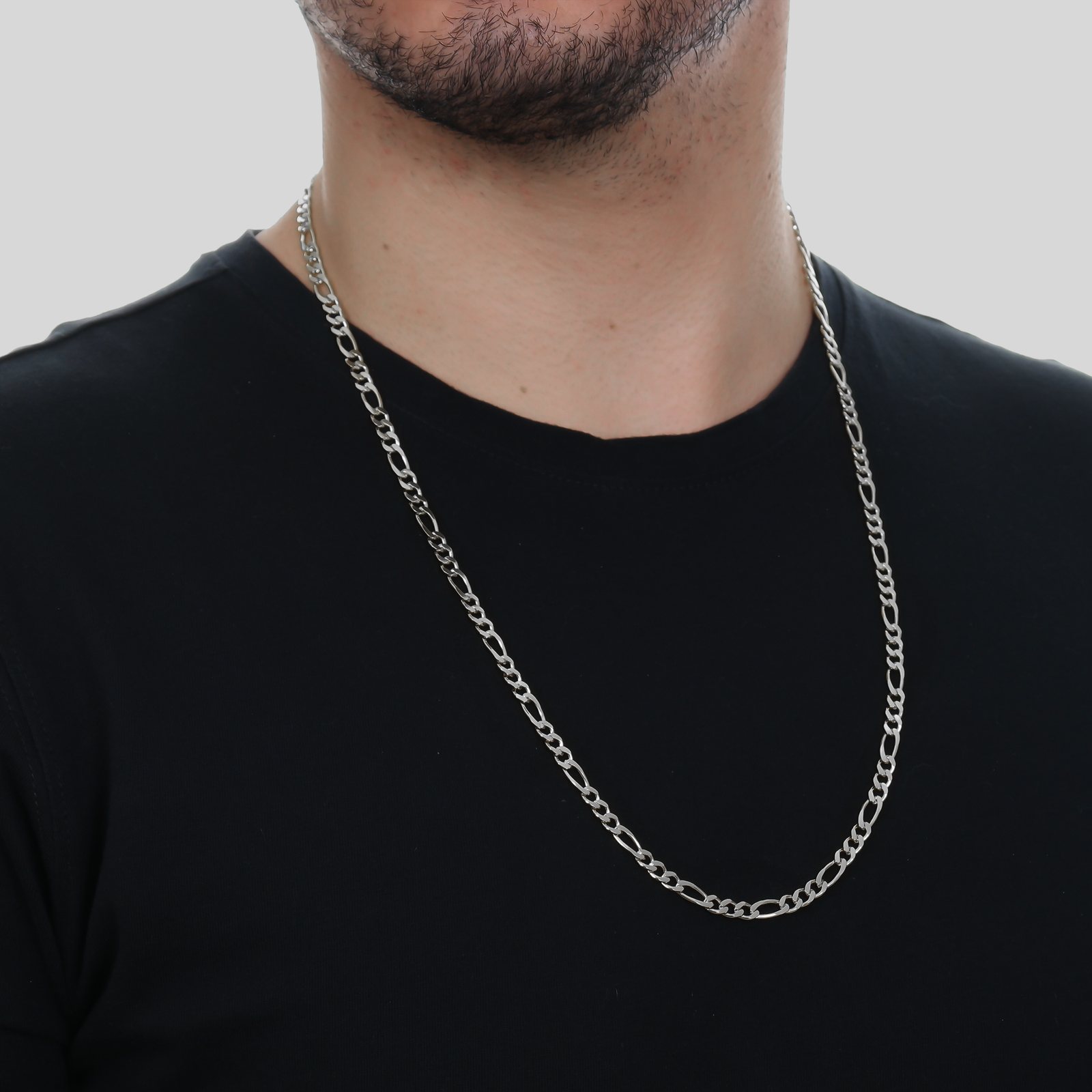 Espessura: 4mm. Tamanho: 65cm. Banho: 10 Camadas de Ouro Branco (Ródio). Possui Tecnologia Antialérgica.
